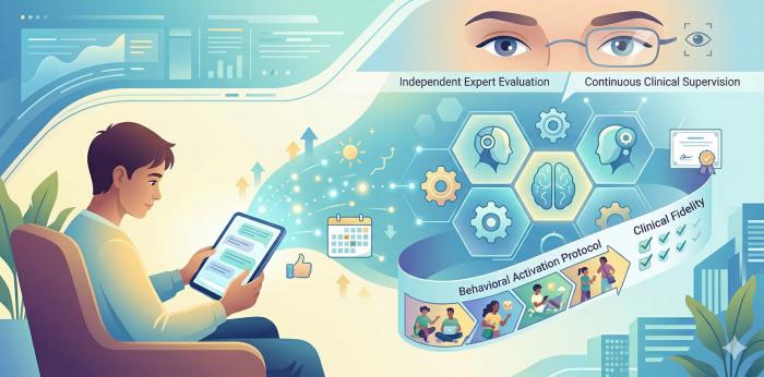 Lo que hace singular a este estudio no es solo el uso de un LLM, sino la forma en que se evaluó su desempeño. Los investigadores crearon 48 usuarios artificiales —también generados con GPT-4o— derivados de viñetas clínicas reales, con variaciones sistemáticas en siete características: severidad depresiva, género, actitud hacia los chatbots, entre otras. Diez psicoterapeutas licenciados o en formación avanzada evaluaron las sesiones de forma ciega utilizando la escala Q-BAS (Quality of Behavioral Activation Scale), un instrumento validado de 14 ítems donde una puntuación igual o superior a 3 sobre 6 indica entrega satisfactoria del protocolo.